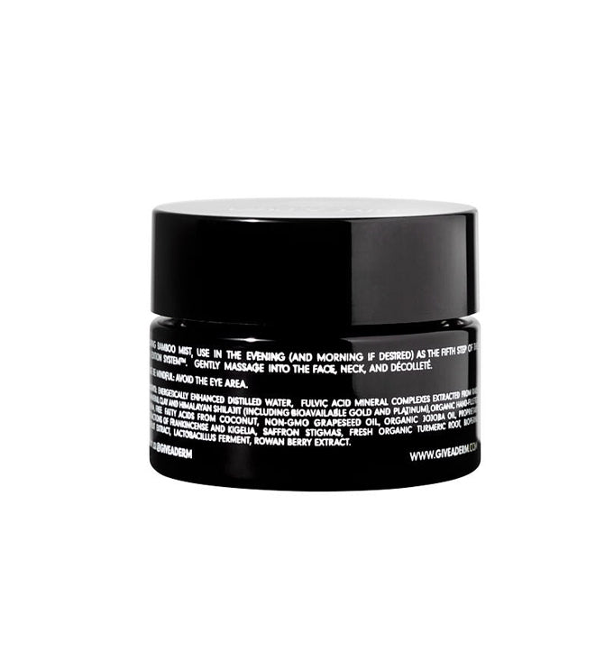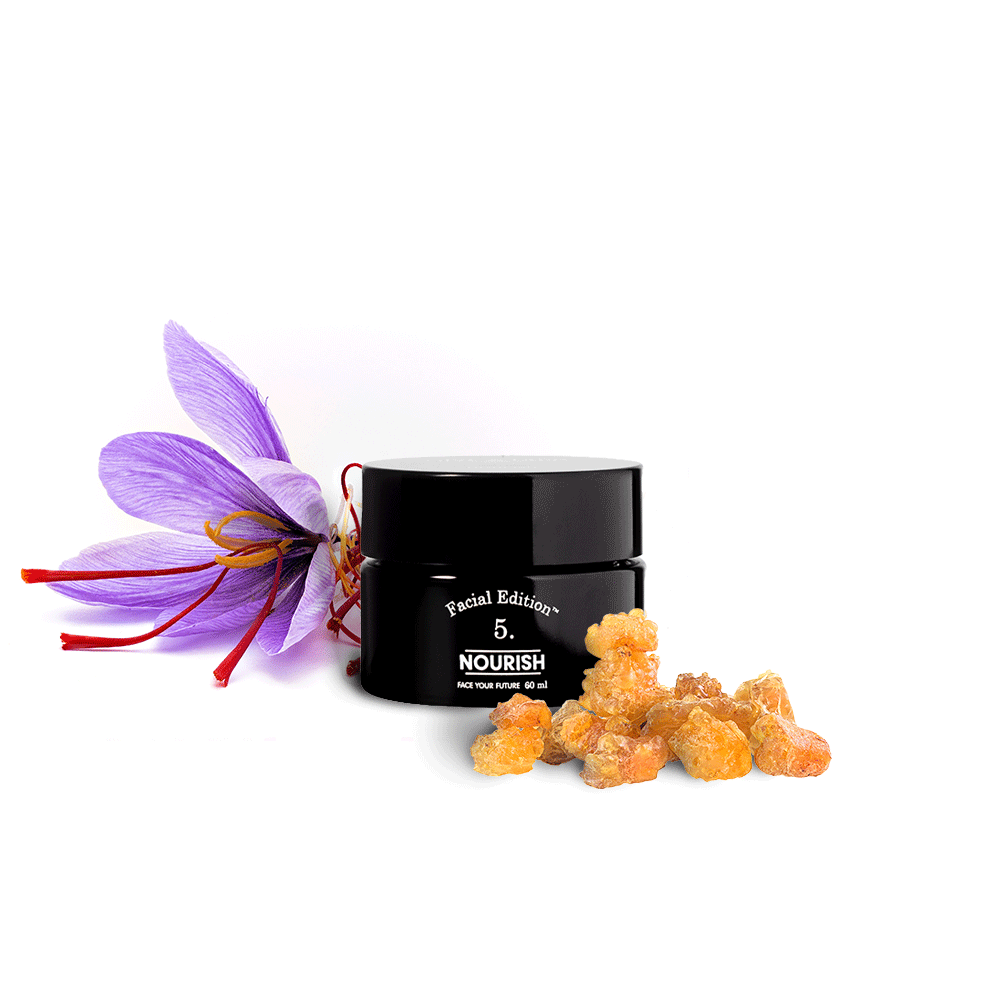 Introducing Step 5: Nourish - The multitasking wonder formulated with potent ingredients like Kigelia and bio-available gold and platinum minerals. This powerful combination reduces the appearance of age spots, soothes sensitive skin, and reduces the prevalence of acne while also providing a protective barrier to keep in all of the nourishment from the previous steps in our Facial Edition™ System.